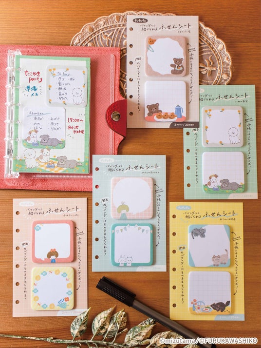 手帳に収まる小さめサイズでメモや予定の管理に大活躍!台紙ごとバインダーに綴じられる便利な付箋シートです。