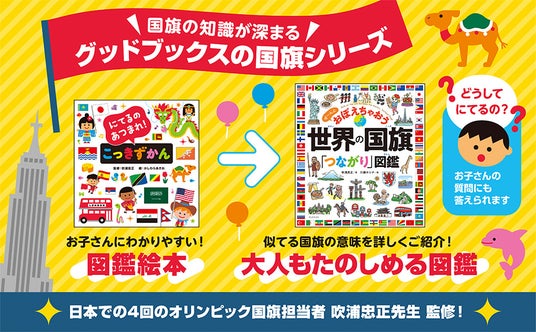 「どうしてこんなに似てるの?」というお子さんの質問には、国旗のデザインの共通性に着目し、国旗の成り立ちや意味を詳しく紹介した姉妹本『世界の国旗「つながり図鑑」』をご覧ください。2冊セットで国旗の知識が深まります。