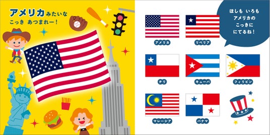 掲載した135 カ国の国旗は、巻末にずらっと掲載!「太陽みたいな国旗はどれだっけ?」「アメリカに似てる国旗を探そう!」などの声かけで国旗の興味はどんどん広がります。親子で楽しんでください。