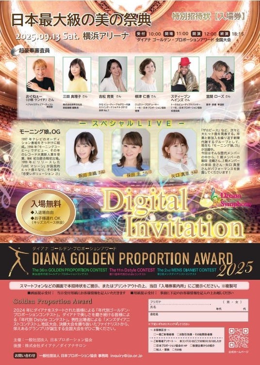 代表取締役会長兼社長:徳田充孝)が、一般社団法人日本プロポーション協会が主催する日本最大級の美の祭典「ダイアナ ゴールデン・プロポーションアワード2025」を2025年9月13日(土)に横浜アリーナで開催されます。
