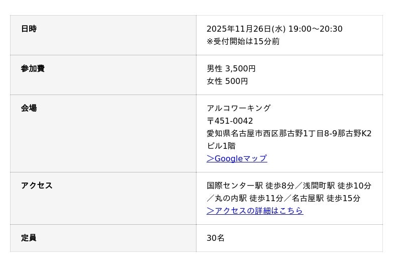 当イベントは、愛知県名古屋市のお酒飲み放題コワーキングスペース「アルコワーキング」が主催しています。