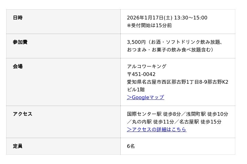 当イベントは、愛知県名古屋市のお酒飲み放題コワーキングスペース「アルコワーキング」が主催しています。