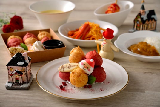 デザートコーナーでは、ホリデーシーズンを彩る「ブッシュ・ド・ノエル」や「シュトーレン」などの伝統スイーツに加え、フルーツをふんだんに使ったケーキやグラスデザートなど、多彩なラインナップをご用意しています。お子様限定にて、自分で飾りつけを楽しめるデザート「シュークリームツリー」やプチギフトもご用意。ご家族での思い出作りとしても、特別なひとときを贈ります。