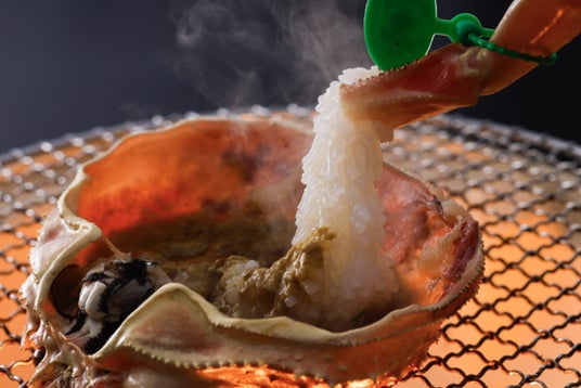 日本海で育った立派な松葉ガニを活きた状態で仕入れ、料理長が腕によりをかけ創る料理の数々――、刺身は華ひらく新鮮さ・備長炭の七輪でじっくり火を通す焼きガニ・湯気たちのぼるお鍋のフルコースをご賞味いただけます。大切な人と美味しい食事を囲む幸せなときをお楽しみください。