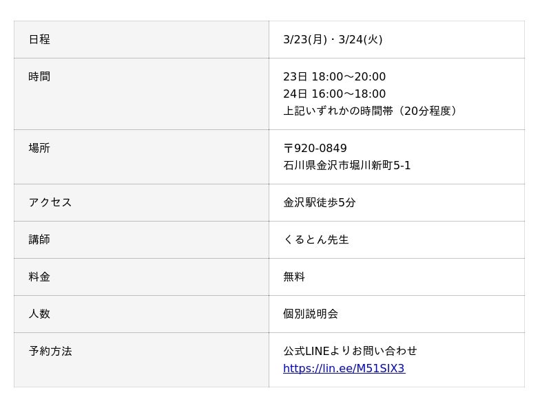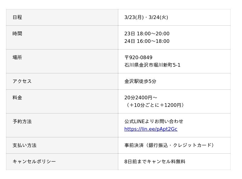 占い師養成CAMPは毎週オンラインで説明会を行っておりますが、このたび金沢校で直接個別説明会を行います。