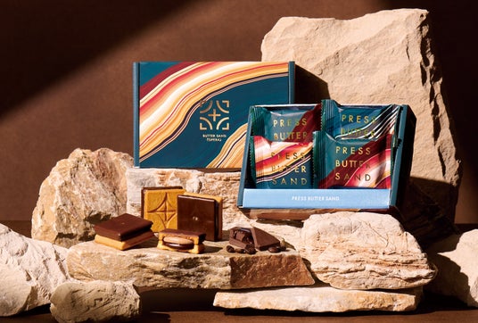 第1弾として発表する「バターサンド〈オペラ〉」は、フランスの伝統菓子“オペラ”から着想を得た、高級感あふれる新作。サクサクのバタークッキーの片側をチョコレートでコーティングし、特別な日にふさわしい贅沢感あふれるバターサンドに仕上げました。