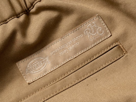 ハーフパンツは、Dickiesが発売している42283 13インチワークショーツから着想を得ました。パンツの丈を長めに調節し、裾口はよりワイドなシルエットに。センタークリース部分にはピンタックを施し、大人の女性も履きたくなるような綺麗な印象に仕上げました。また、ウエストには、調整可能なミックスコードのスピンドルをデザインに加え、RHCの遊び心溢れるスポーティさもプラス。素材は、TC素材でクールマックス(吸水速乾性+通気性)のストレッチ素材を起用し、機能性も加え、アクティブなシーンにも最適な仕様に。そして、今回のコラボレーションのために特別に作られた「3社合同ブランドネーム( Dickies × JANE SMITH × RHC )」のタグをバックポケット部分に付けました。春夏シーズンには、スポーティに足元はソックスとスニーカーを合わせて、カジュアルな装いに。秋冬シーズンには、綺麗なローファーやロングブーツを合わせて、上品で大人な装いに。シーズンレスに、今の気分に合わせたスタイリングをお楽しみいただけます。