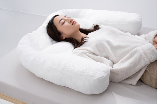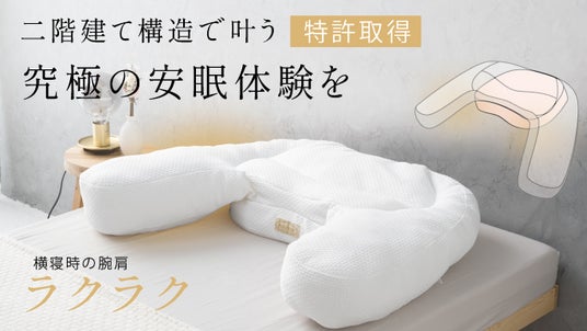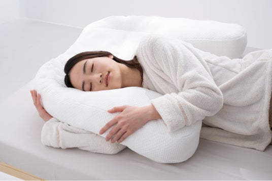 腕や肩が痛くなりがちな横寝姿勢も、ハグネグならcocochi factory独自の特許構造「二階建て構造」で負担を軽減し朝までぐっすり眠れますzzz