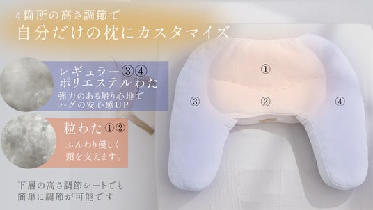 中央の枕の部分にはふんわり優しく頭を支える「粒わた」を採用し