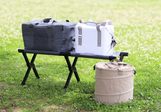 大きく重いハードクーラーでなく、ちょっとのお出かけにサッと持ち出しやすいコンパクトサイズ。それぞれ「使いたくなる」機能が備わっており、お外へ気持ちを運んでくれます。使わない時はペタンと畳んで、省スペースで保管出来ます。