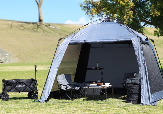 グループや家族で楽しめる大きめのサイズ感。オープン/フルメッシュ/ クローズ/キャノピーの4WAY スタイルで天候や使用用途に合わせて変更可能。