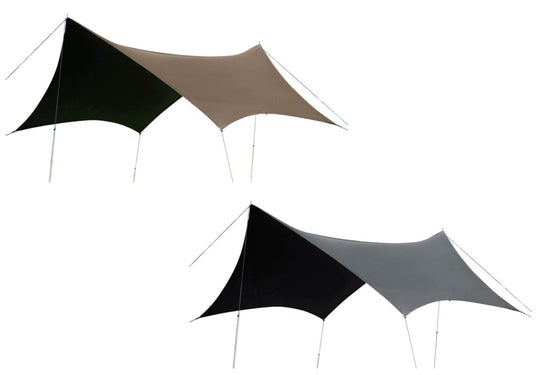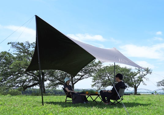 大きな影を作り出すファミリーサイズ。高級感あるリップストップ生地を採用し、初心者でも簡単に美しいシルエットで張れます。キャンプはもちろん、川遊びやBBQ で活躍します。