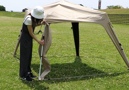 簡単に組立てられタイパ抜群。暑い中でも面倒な手間なしで、すぐに設営できます。ワンタッチ構造で、設営も撤収もスマート&快適に。