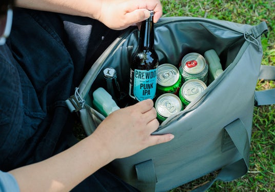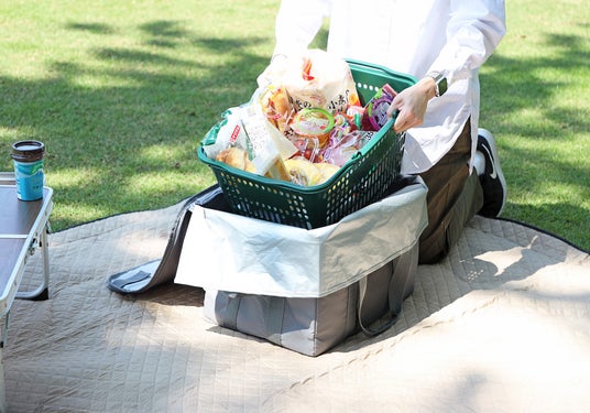 お買い物カゴごとスッポリ入るソフトクーラー。荷物の詰め替えいらずで、そのままBBQ やアウトドアへ持ち出せます。