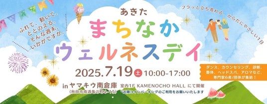 秋田市の中心部にて、地域の医療・福祉・ウェルネスの専門家が集い、予防・未病をテーマにした体験型イベント「まちなかウェルネスデイ」を2025年7月19日(土)に開催します。