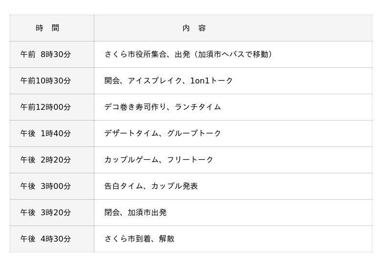 男性:24歳~50歳でさくら市及び近隣市町在住・在勤の独身の方