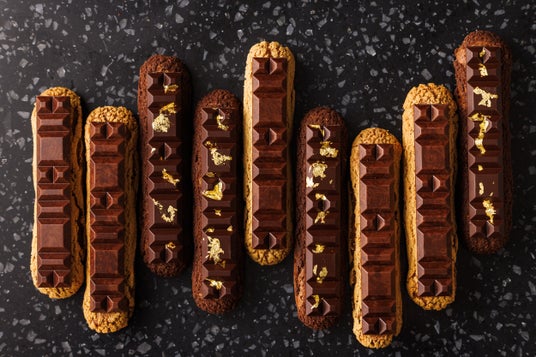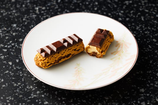 ▼エクレール・ショコラ・プラリネサクサクのショコラクランブルをまとったシュー生地に、赤いフルーツのような酸味が特徴のマダガスカル産カカオ100%と75%のショコラのクリームとへーゼルナッツとカカオニブのプラリネを詰めた、カカオ本来の酸味とプラリネの香ばしさを楽しめるエクレアです。