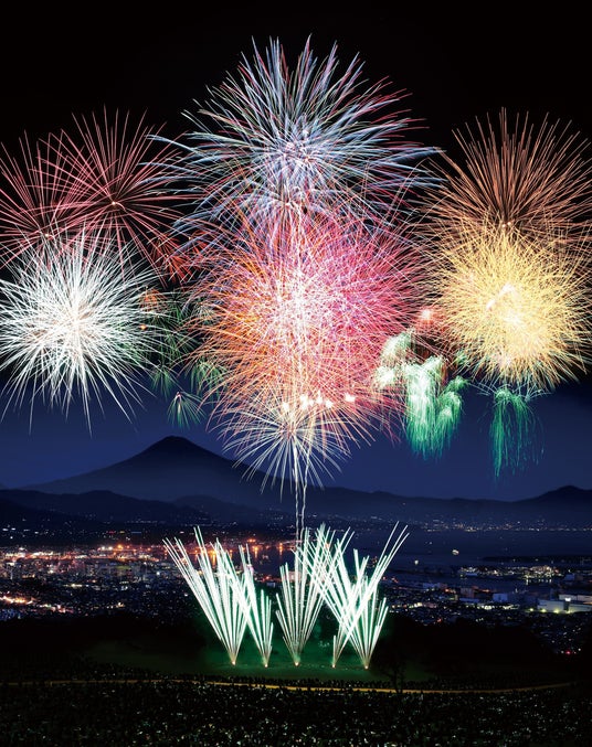 日本夜景遺産にも選ばれている日本平の夜景を背景に、野外庭園の芝生に寝ころびながら、花火×照明×音楽の壮大な花火ショーを楽しめるのが日本平まつりです。40回の記念大会を迎える今年の花火ショーでは、日本平の「歴史と伝説」をテーマに、戦国の世を駆け抜けた武将たちの足跡と日本の礎を築いた数々の伝説が息づくこの地の軌跡を花火でたどります。