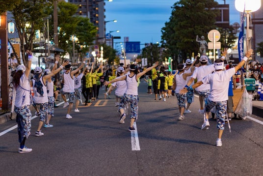 当日の飛び入り参加も可能で、大通りを通行止めにして、総勢2万人ともいわれる老若男女が躍りを楽しみます。