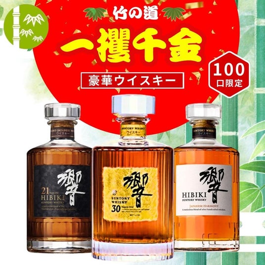 タチバナE酒販は、超目玉に日本のブレンデッドウイスキー最高峰「響30年」を設定した【100口限定】ウイスキーくじ《一攫千金 竹の道》を絶賛販売中。幻の至宝を手にする究極の運試しに挑戦できます。