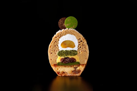 今年、開業61周年を迎えたホテルニューオータニ(東京)では、第7代シェフパティシエに森山雄大が就任。伝統の技を継承しながら新たな挑戦を重ねています。そんな森山が手掛けた最新作が、この『スーパーモンブラン』。和栗の豊かな風味を活かすため、いま世界的に注目を集める“抹茶”を融合させた、洋と和の調和が愉しめる季節限定の逸品です。
