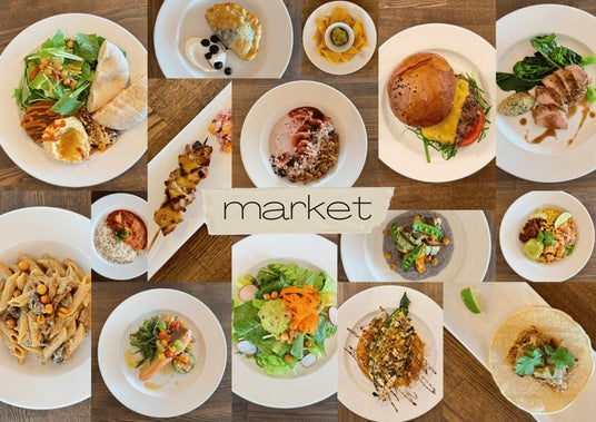 つくば駅直結「トナリエキュート」内にあるFarm to Tableレストラン「market(マーケット)」では、地元で人気のファーマーズマーケット「Village Market Tsukuba」と連携し、茨城県の農家から直接仕入れた無農薬・無添加の新鮮な食材を使用。旬の野菜やこだわりの調味料を使った料理を通じて、作り手の想いや土地の恵みを伝えています。