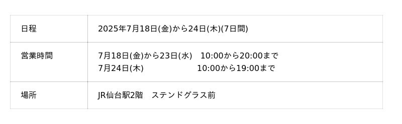 2025年7月18日(金)から7月24日(木)までJR仙台駅2階ステンドグラス前にて開催
