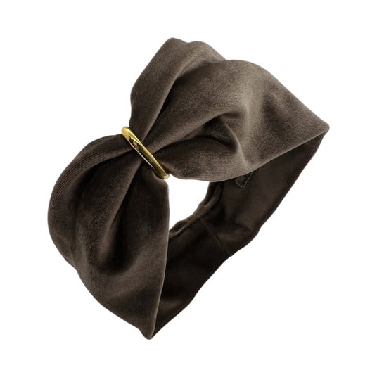 オールブラックな装いに、ブラウン、キャメルは差し色として、ホワイト系の装いにはグレー、ネイビー、ブラックがきりりと縁取るシックな印象を与えます。伸縮性に優れたベロア素材は長時間の装着でも痛みを感じることがなく、とても着け心地が良いアイテムです。メタルリングが可動式ですので、ゴールドのアクセサリーなどとコーディネートを楽しんだり、メタルリングを外してカジュアルに装ったり1アイテムで多様な楽しみ方ができます。