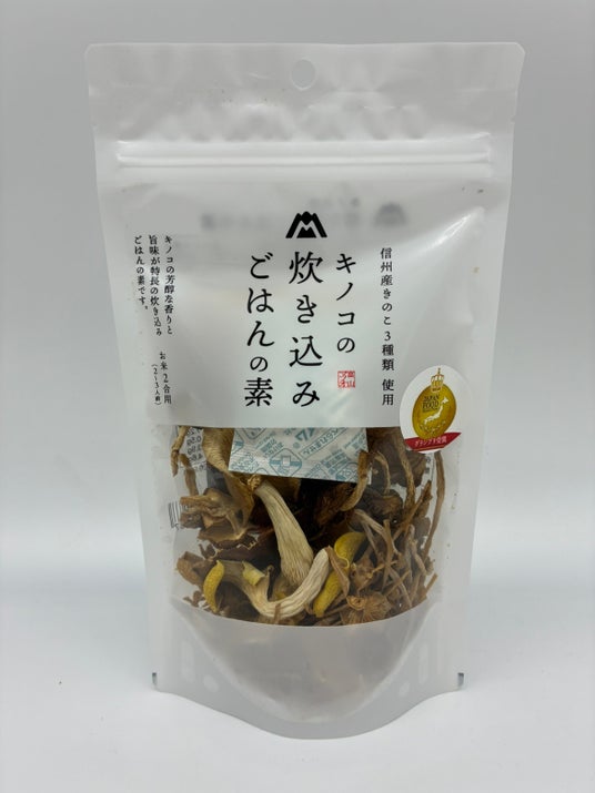 3種類の乾燥キノコを使用し、乾燥することでキノコのエキスが凝縮され、生のキノコでは味わえない香りと食感が堪能できる贅沢な炊き込みご飯の素です。
