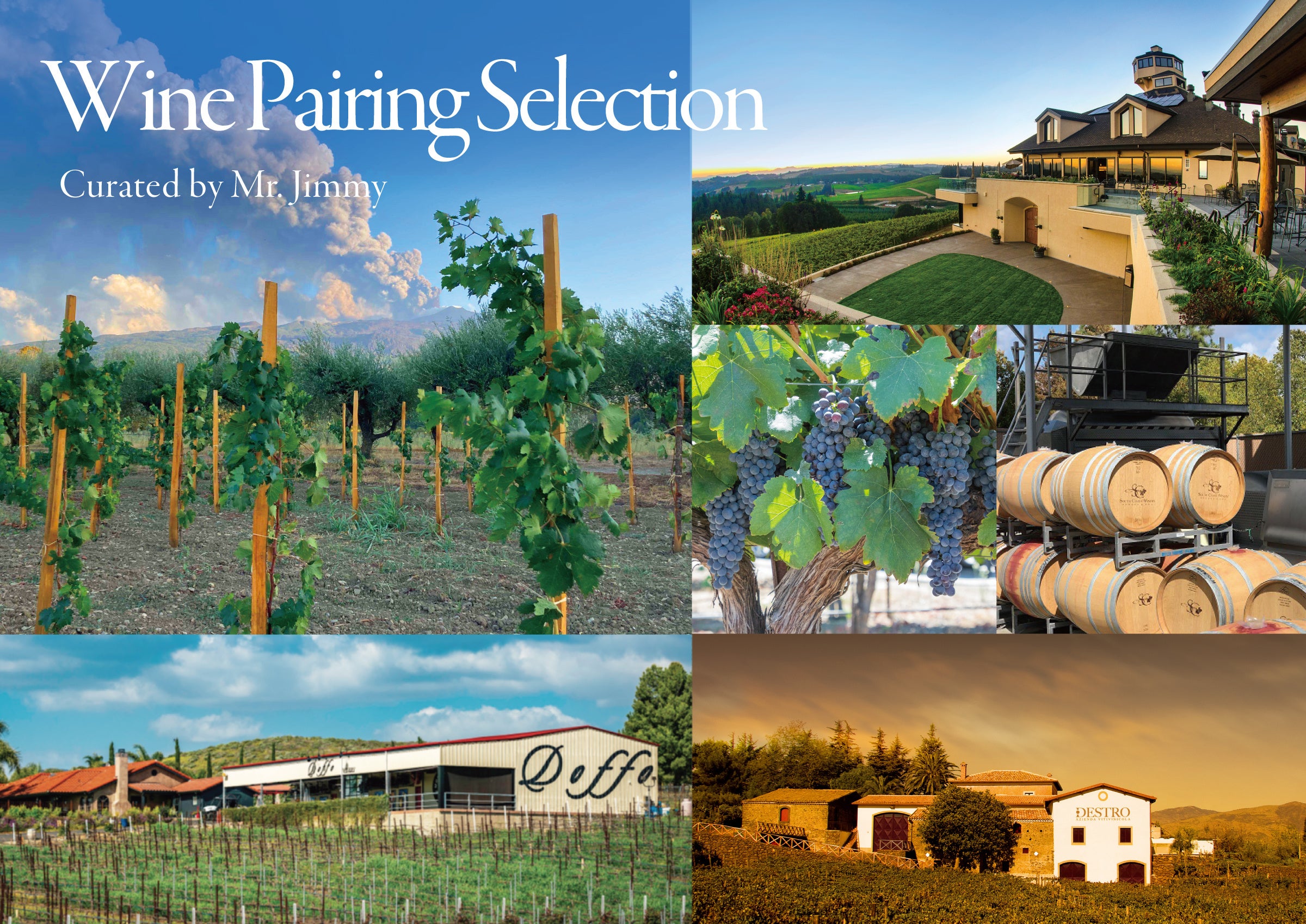 世界を旅してワイナリーを巡り、現地で高い評価を得たワインを発掘してきたワインエキスパート Mr.Jimmy が厳選。初めての方も安心して、愛好家の方にも新しい発見をお届けできる、四季ごとに表情を変えるワインペアリングです。