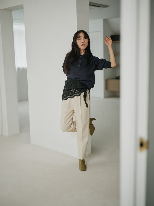 Narrow Belt Tucked Tapered Pants : ¥19,800