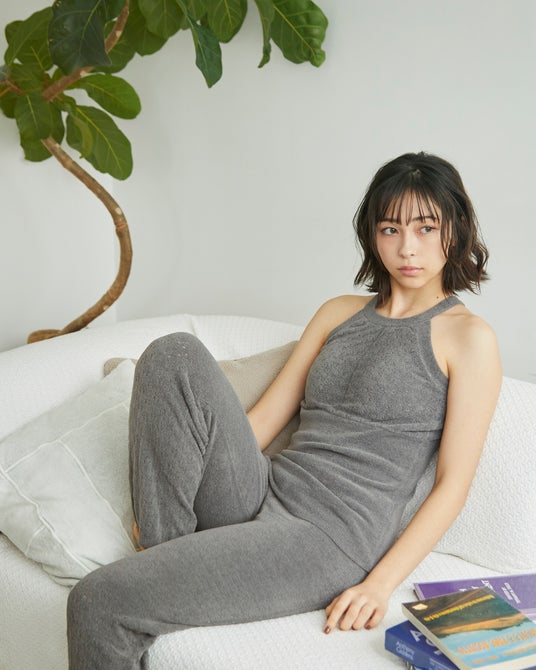 “透かし編み”をデザインに取り入れ、着るだけで体温を1℃上げる唯一無二のニットランジェリー。肌にやさしくフィットしながら、糸を使い切るミニマルでサステナブルな温活ライフを、あなたへ。