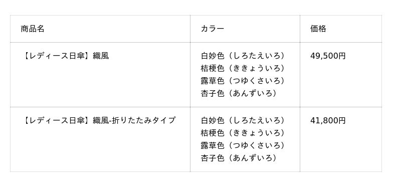メイドインジャパンにこだわった素材と仕立てが自慢の昔ながらの純パラソル
