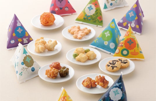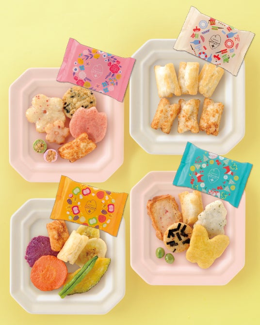 [おかき]や[あられ]が食べきりサイズの可愛いらしい個包装に入っています。