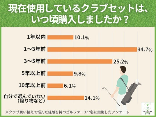 全体の約6割のゴルファーが5年以内にクラブを購入していることになり、多くのゴルファーが定期的にクラブの買い替えを検討・行っていることがうかがえます。