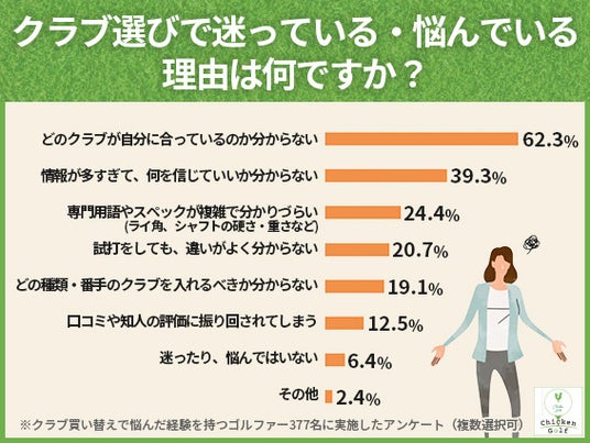 クラブ選びに悩むゴルファーの実に62.3%が、「自分に合うクラブが分からない」という悩みを抱えていることが明らかになりました。