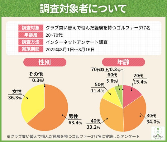 今回は、ゴルフクラブの買い替えに悩んでいる全国の男女377人を対象にアンケート調査を実施し、クラブ選びで最も多かった悩みや重視しているポイント、利用している情報源など、リアルな実態を明らかにしました。