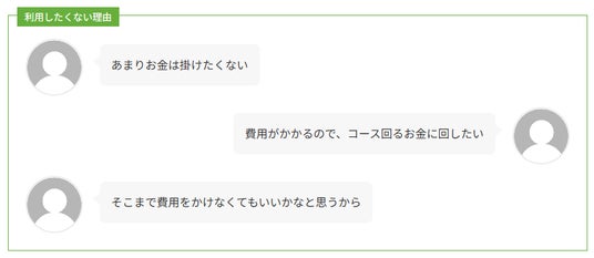 利用したくない理由について尋ねると、『経済的要因』が圧倒的で、以下のような声が見受けられました。