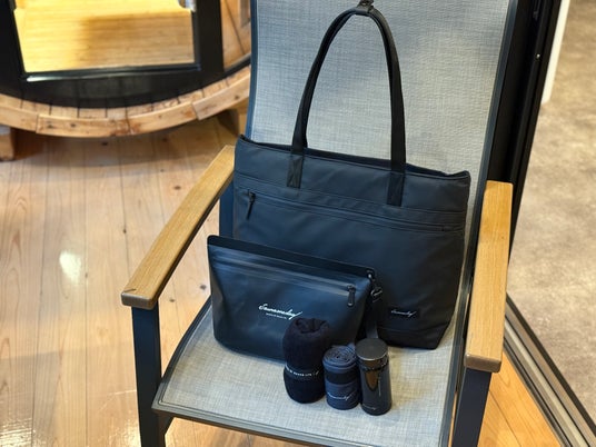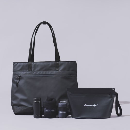 毎日サウナに行きたい人のために、必要なツールをひとまとめにしたセット。いつでもサウナに行く準備をしておける4つのプロダクトで、自分らしいサウナスタイルを確立。
