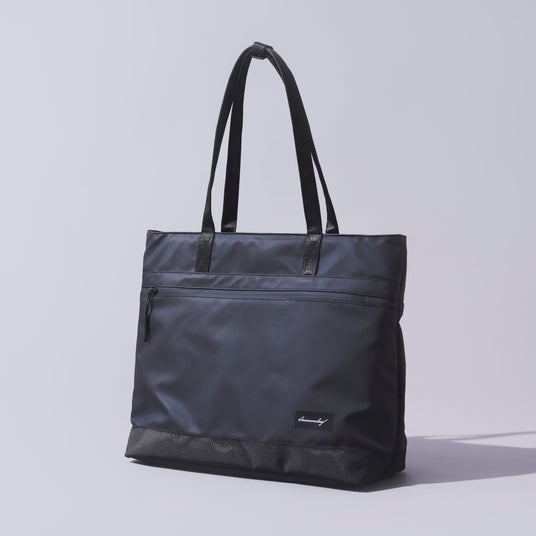 サウナとバッグの相性が良い、背中が蒸れないビジネストートバッグ。ハンドルは長めの設計にすることで服を着込んでも肩がけしやすくオールシーズン使いやすい。インナーに忍ばせたショートハンドルで手持ちもできる2WAY仕様。バッグ外側のメインファブリックにはナイロンの糸を高密度に織ったナイロンオックスフォード900Dを採用。両面に付いている外ポケットにはTPU素材の止水ジッパーを使用し、内部生地は水を弾くポリエステル素材にすることで、濡れたタオルや水着を直接収納することもできる。バッグ内側には16incのラップトップが収納できるPCポケット、ガジェットや着替えが収納できるメッシュポケット、時計やアクセサリーが収納できるショートポケット、鍵の取り出しに便利なキーリング、バッグの開閉ができるスナップボタンを装備。また高機能ビジネスライクなルックとサウナライフのための機能性が共存したSaunaonedayのシグネチャーアイテム。