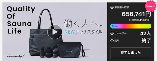 2024年12月にMakuakeで先行販売を開始。開始から5日で目標を達成し、最終的に目標達成率145%・42人のサポーターが参加しました。ターゲットを絞ったブランドコンセプトでありながら、開始当初からブランド理念に共鳴した濃い支持が寄せられました。