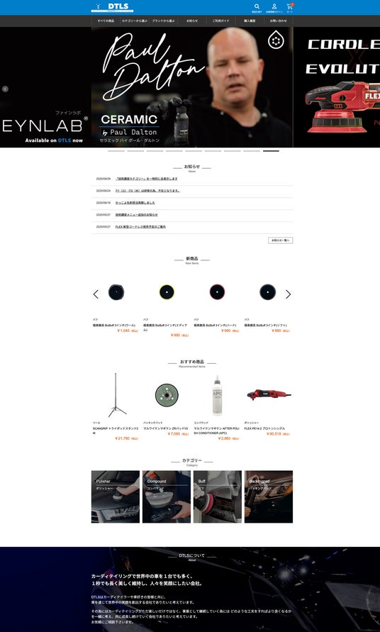 2024年1月のプレオープンから半年。17ブランドの導入と、プロ施工業者からの支持を積み重ねてきたカーケア用品専門サイト「DTLS(ディテイルス)」が、2025年6月、ついに本格オープンいたします。