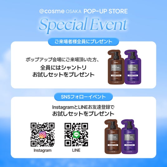 ポップアップ会場にご来場頂いた方、全員に「お試しシャントリセット」をプレゼント。