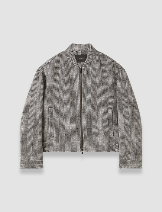 100% バージンウールで作られた、ヘリンボーンパターンのボンバージャケット。
