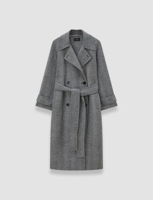 100% バージンウールで作られた、ヘリンボーンパターンのリラックスフィットコート。