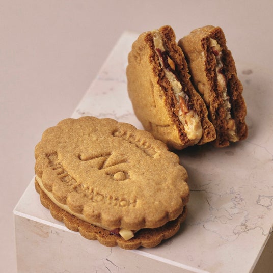 キャラメルバターサンドイッチにビターでスイートな仲間が登場。発酵バターたっぷりのサブレからほろ苦いキャラメルがとろける、魅惑のバターサンドです。ひとつひとつ丁寧な手仕事でお届けするちょっぴり大人な味わいを、お楽しみください。