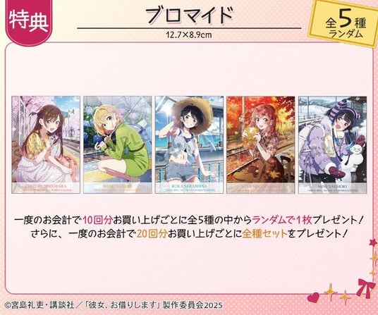 一度のお会計で10回分ご購入ごとに特典ブロマイド(全5種)の中からランダムで1枚、20回分ご購入ごとに全種セットプレゼント!