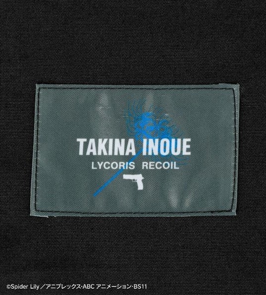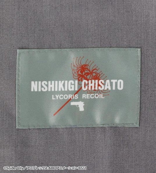 袖部分には、錦木千束をイメージしたカラーのアームクリップをアクセントとして取り付け、胸元にはリコリスの校章を刺繍で再現しました。