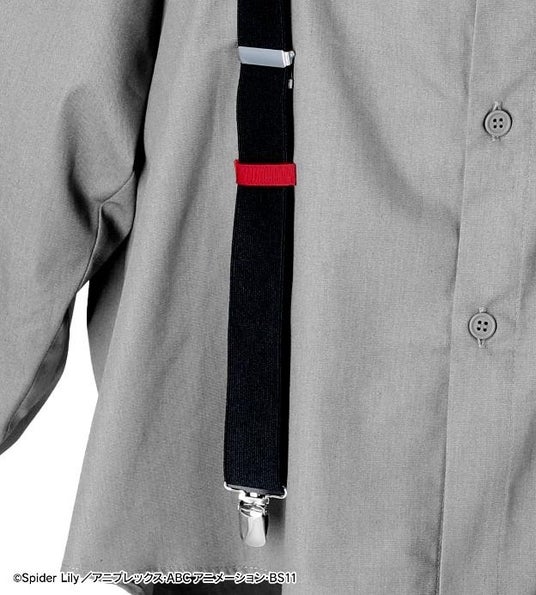 身頃には、デザインの一部としてサスペンダー風の装飾をあしらい、途中には錦木千束をイメージしたカラーのループをアクセントとして縫い付けています。