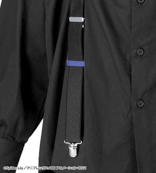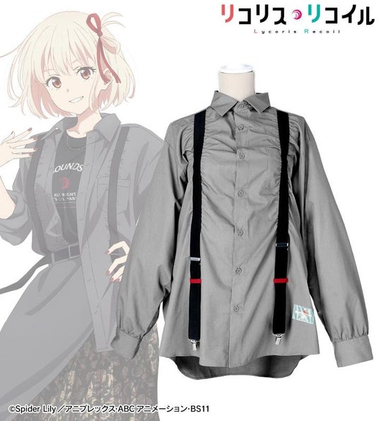 身頃には、デザインの一部としてサスペンダー風の装飾をあしらい、途中には井ノ上たきなをイメージしたカラーのループをアクセントとして縫い付けています。